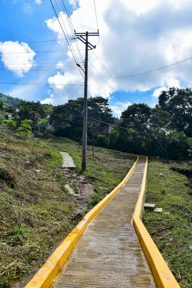 Son obras que detonan el progreso, pero no solamente para unos cuantos o para la gente que camina sobre el andador, sino que son obras que benefician a varias secciones; benefician a la comunidad escolar, a los transportistas, porque ahora ya pueden acceder hasta estos lugares y tener un ingreso más.