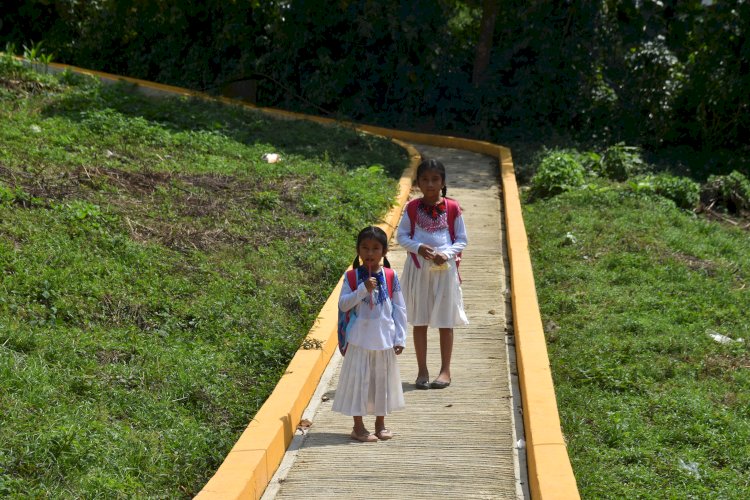 Los niños que bajan de Tacaloco, los niños que viven aquí en Talcuaco y los niños que vienen de la tercera sección, ellos también se han beneficiado con los proyectos que ha estado implementando el gobierno municipal antorchista; de esta manera, los niños ya tienen una pavimentación por donde trasladarse de su casa a la escuela.