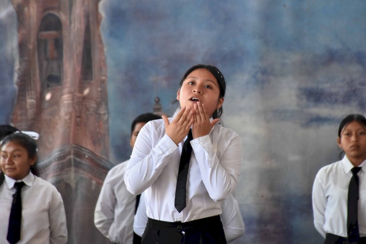 Suenan las campanas como señal de fiesta. Olintla vibra y se estremece cuando ve a sus hijos bailar, cantar y declamar. Más de 200 alumnos en el escenario, cantando “Dime que sí” del autor Alfonso Esparza Oteo, bailando huasteca veracruzana e hidalguense o declamando “Sentado sobre los muertos” del poeta español Miguel Hernández.